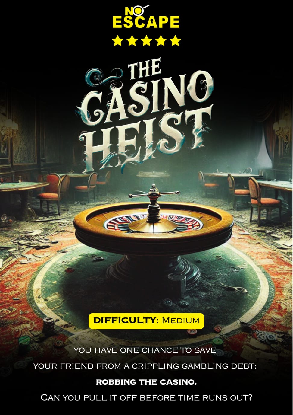 Pull off a high-stakes casino heist inside an immersive escape room.